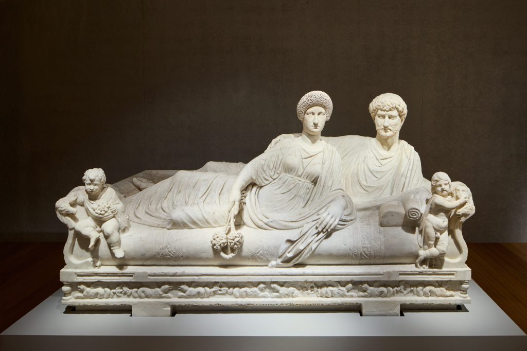 La réalité était tout autre en l’an 50, ou 150, ou 100 avant l’ère commune. Un sarcophage avec les 12 travaux d’Hercule comme décoration avait une intention, aussi bien que celui avec un couvercle montrant un couple charmant, allongé comme sur un canapé chez soi (indice : la famille était riche). Culture, histoire, propagande, vénération, portrait, etc. Chaque projet a un objectif, outre celui d’être « bien fabriqué ».